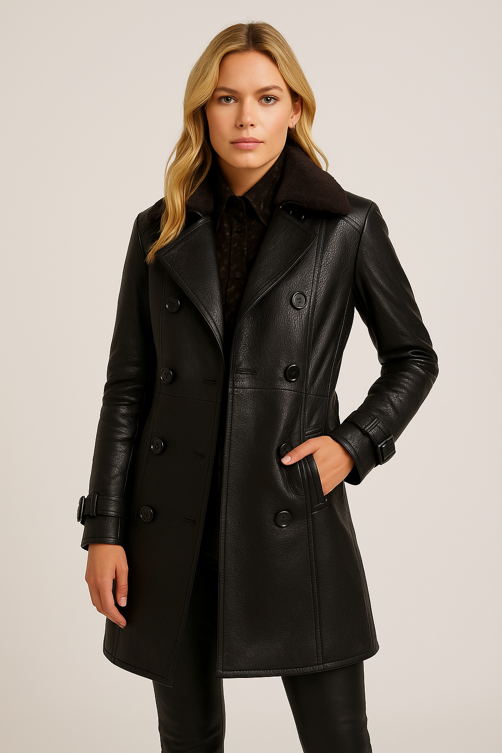 Vores Lynea læderfrakke kombinerer et elegant og moderne design med enestående komfort og er et alsidigt stykke tøj, der passer både til afslappede looks og formelle lejligheder. Den trekvart lange snit og raffinerede finish gør denne frakke til et uundværligt basiselement i enhver kvindes garderobe.